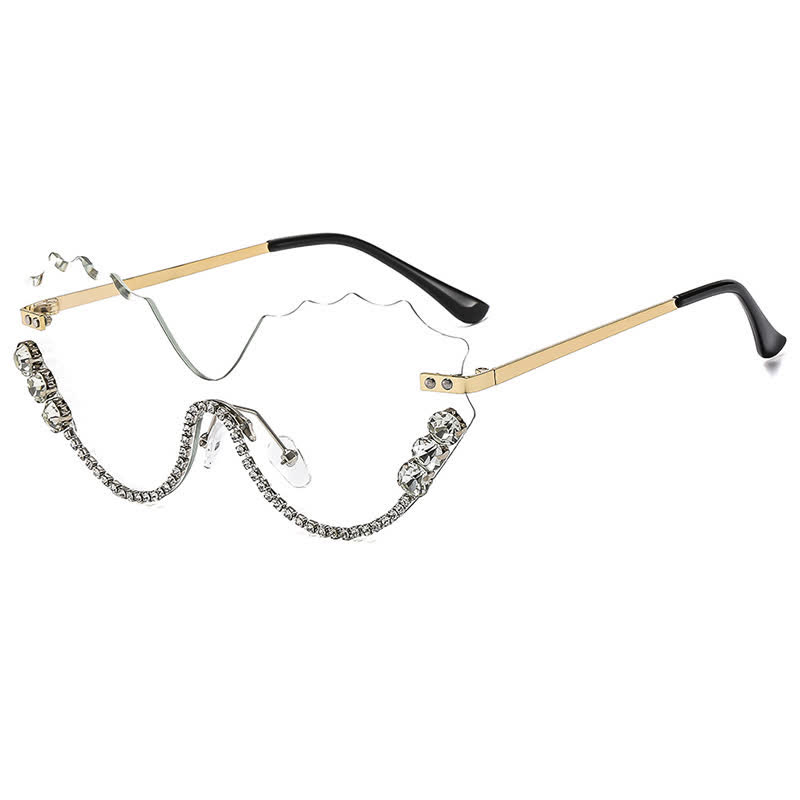 Spykay™ EG26759 Rhinestone Decor Wave Frame Oversized Rimless Eyeglasses