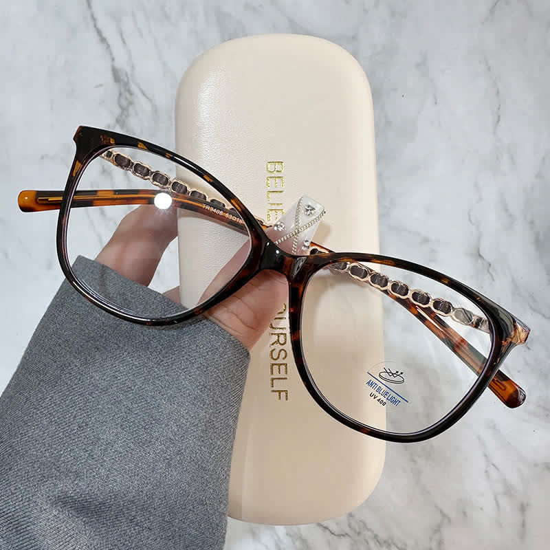 Spykay™ EG26697 Square Frame Chain Temples Anti-blue Light Lightweight Glasses