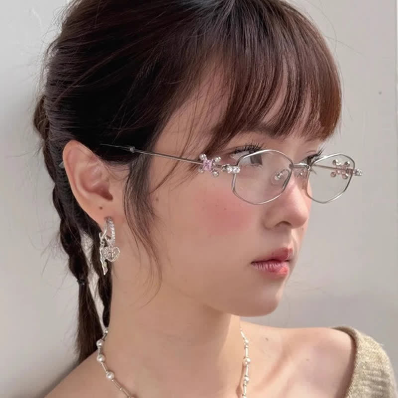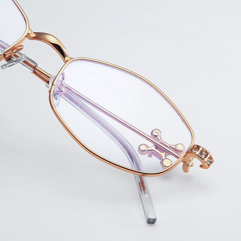 Spykay™ EG26713 Geometric Frame Rhinestone Decor Temples Anti-blue Light Glasses