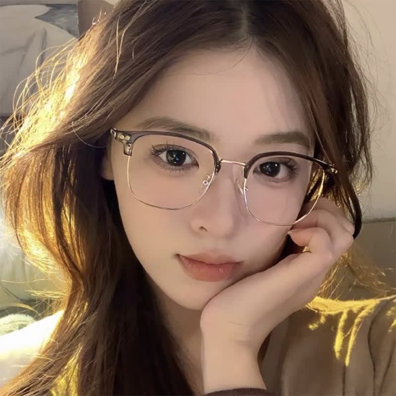 Spykay™ EG26739 Lightweight Square Titanium Frame Anti-blue Light Browline Glasses